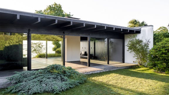 Kræver medlemskabArkitekt Halldor Gunnløgssons eget hus fra 1958 er en enkel og elegant konstruktion i træ med store panoramavinduer mod Øresund på den ene side og den private have på den anden. Huset er et af de mest raffinerede enfamiliehuse fra perioden.