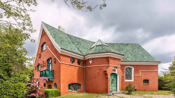 Willumsen er kendt for sin billedkunst, men her ser du hans arkitektoniske hovedværk. Han tegnede villaen som bolig og arbejdssted for sig selv og sin hustru, billedhuggeren Edith Willumsen, og satte sit præg overalt – i plan, detaljer og indbyggede kunstværker.