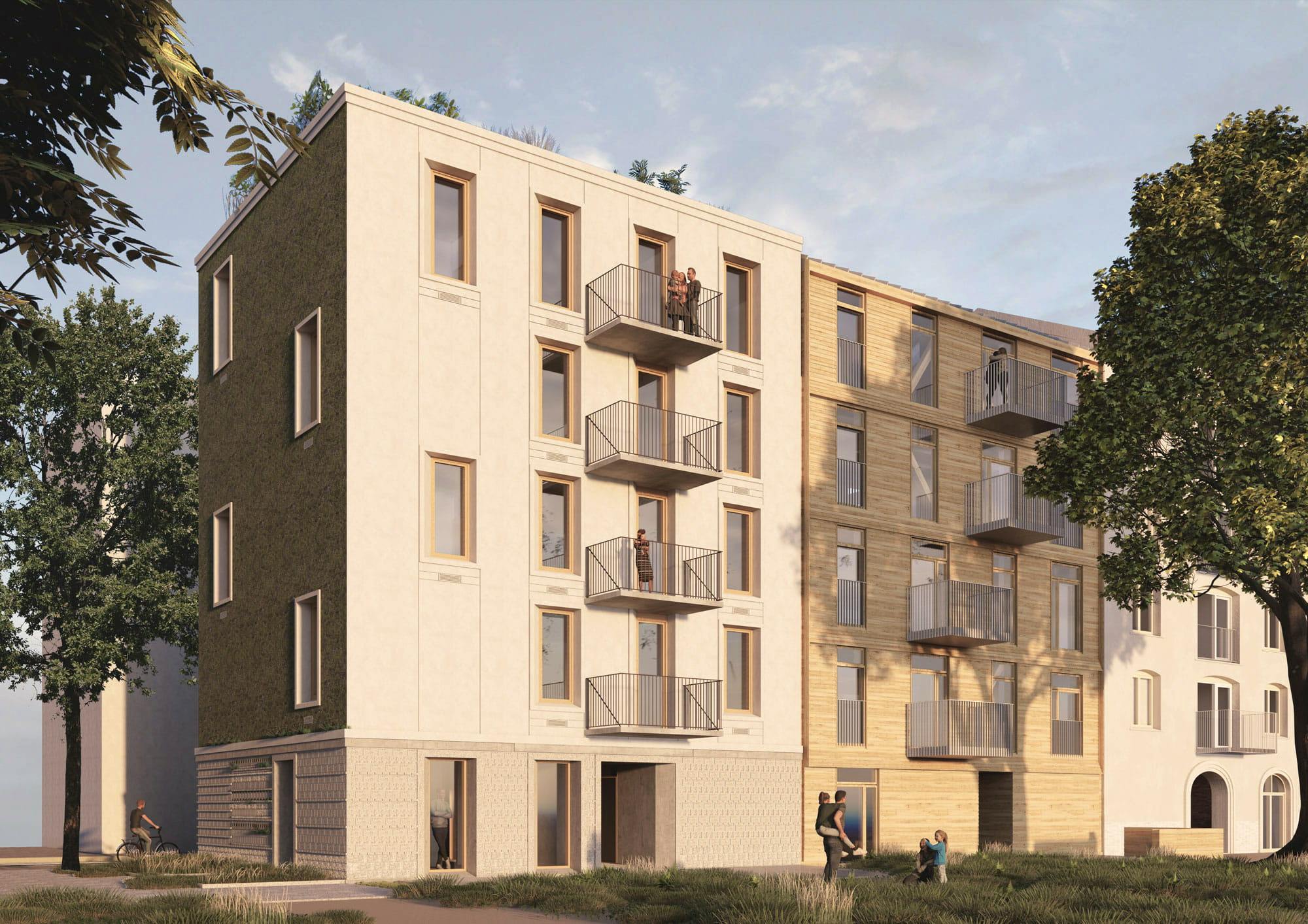 På Kongensstræde i Fredericia skyder en række femetagers boligbyggerier op side om side. Gaden er omdrejningspunkt for Realdania By & Bygs store udviklingsprojekt, som undersøger hvilke materialer, der er bedst at bygge med - i forhold til klima, anlægsøkonomi, funktionalitet og komfort.