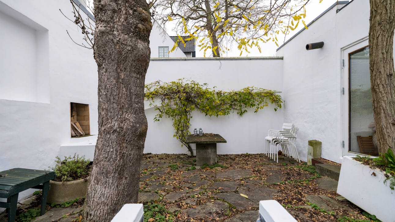 Realdania By & Byg Klubbens vært byder velkommen. Herefter fortæller arkitekt og projektchef i Realdania By & Byg Frants Frandsen om huset, arkitekturen og den kommende restaurering. Herefter kan deltagerne frit bevæge sig rundt i huset, atelieret og haven.
