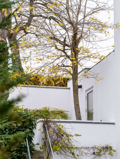 Huset er baseret på arkitekten Le Corbusiers principper for ny arkitektur formuleret i 1926. Dette ideal fastlagde fem punkter, som skulle skabe grundlag for en fri og moderne arkitektur. En bygnings skulle således have en frit komponerede facade med lange vinduesbånd. Bygningens indre skulle disponeres frit med fritstående søjler. Øverst skulle huset have en taghave.